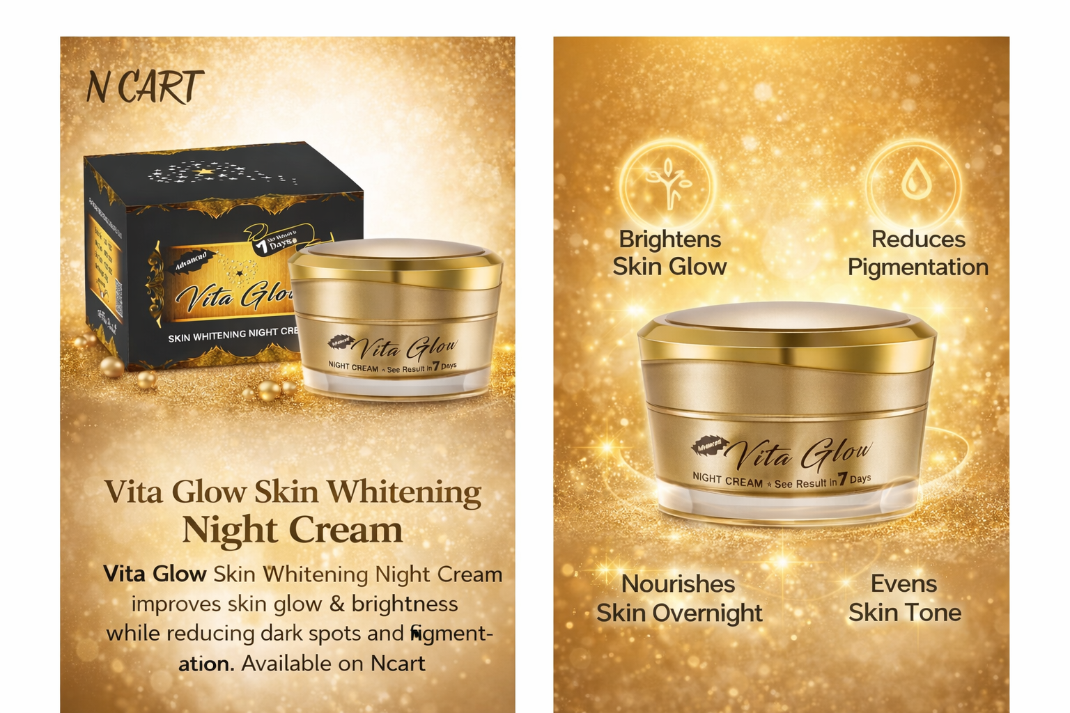 Vita Glow Skin Whitening Night Cream, available on Ncart, is becoming a popular choice for people who want better skin glow, brighter complexion, and smoother skin texture. This skin whitening cream is designed to nourish the skin overnight and support natural skin repair.